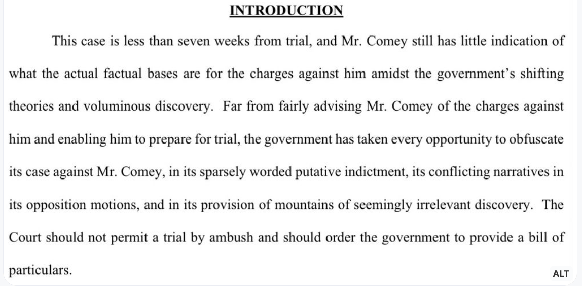 In other news, it was a bad day for Donald Trump on the legal front, with a federal judge ordering his administration to end federal guard deployment in Washington, DC., and a blistering request for a Bill of Particulars in the James Comey case, which I live-posted about here. The TL; DR is that the government has been so vague about what Comey allegedly said and when that the defense can’t figure out what he’s alleged to have done. That’s never a good sign for the prosecution.