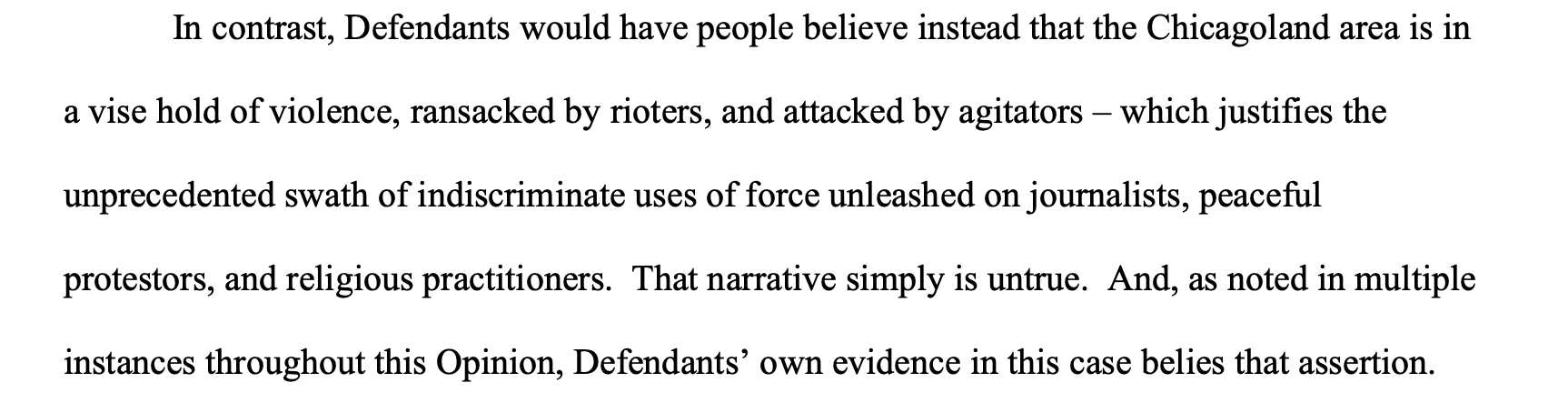 Perhaps most damning of all, federal judge Sara Ellis, who heard days of testimony from Border Patrol’s Greg Bovino and other DHS officials, spent nearly 100 pages of her preliminary injunction ruling detailing how video and witness testimony contradicted the testimony of DHS witnesses regarding ICE and CBP in Chicago.