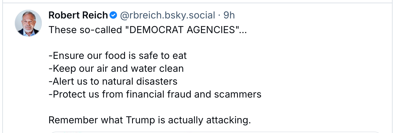Meanwhile, the Trump administration is using the shutdown to further purge non-MAGA employees from “Democrat agencies,” whatever those are.