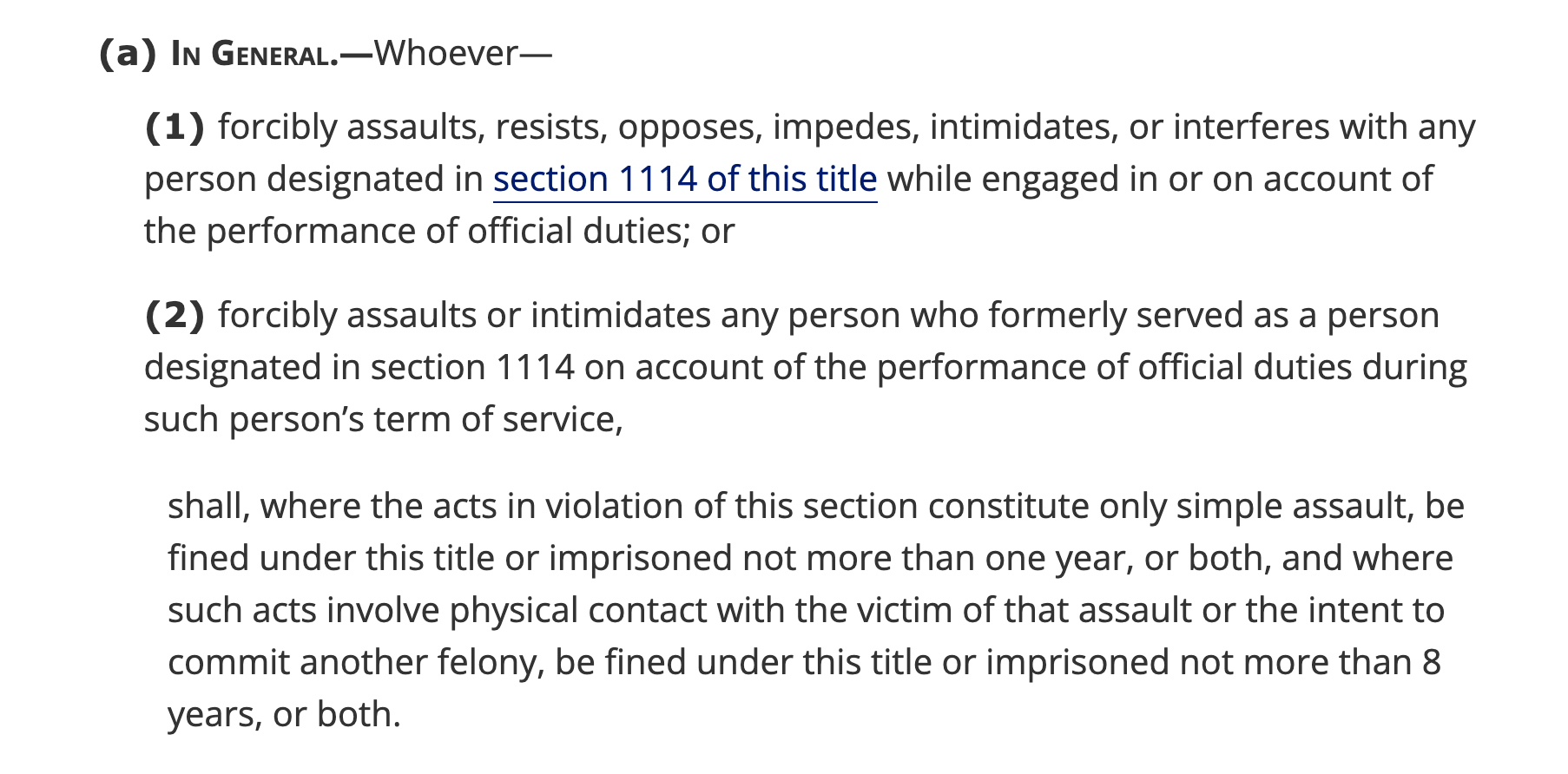 You may hear ICE or CBP agents telling you that you’re violating a federal law, specifically 18 USC 111. Here’s what that statute says: